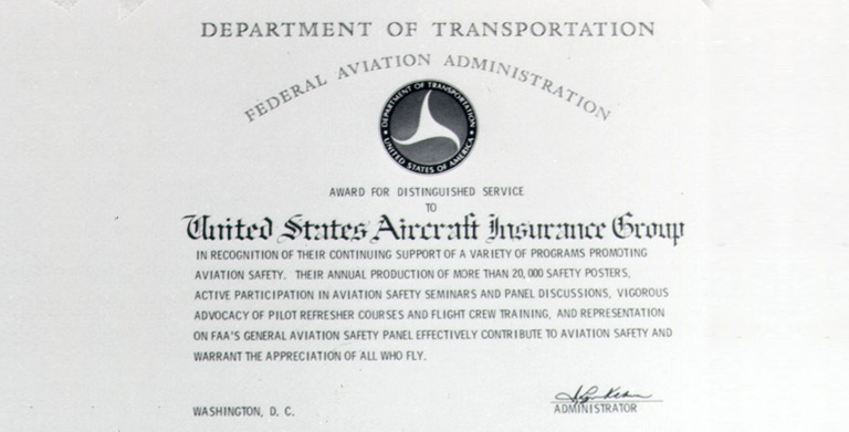 Becomes first aviation insurance organization to receive the FAA’s Distinguished Service Award, recognizing contributions to aviation safety.