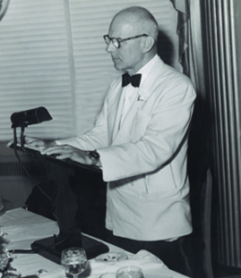 USAIG and its Managers celebrate 25 years between the period when financial speculators first saw an opportunity in civil aviation for those who were willing to take a gamble and the present time, when airlines and the aircraft industry became an accepted part of a complex economic structure. (Photo: Jimmy Doolittle delivering congratulatory remarks to USAIG in 1953)